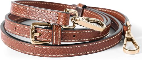 GQ - حزام حقيبة صغيرة من الجلد الطبيعي، حزام حقيبة بني قابل للتعديل بديل لشنطة النساء مع مشابك ذهبية من جي كيو