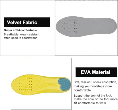 - مواد عالية الجودة: قطيفة طبية متينة وعالية الجودة، يمكنها امتصاص العرق وتمتص الرطوبة، جيدة التهوية للغاية، بحيث تكون قدميك منتعشة. مادة البولي يوريثان، آمنة على جسم الإنسان، منتجات صديقة للبيئة، استخدام آثار جانبية غير سامة، مناسبة لكل من الرجال والنساء، الصغار والكبار.
