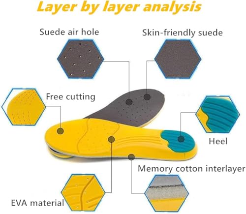 GQ - نعل داخلي من الميموري فوم، نعل داخلي رياضي من البولي يوريثان، مريح وجيد التهوية، لتخفيف آلام القدم، نعل مرن للغاية، نعال داخلية لدعم قوس القدم لكرة السلة والمشي من جي كيو (مقاس 41 إلى 45 EU)
