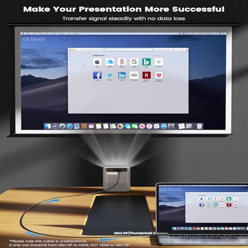 GR Deals - كيبل منفذ عرض صغير ثاندربولت 2 إلى HDMI ذكر إلى ذكر بطول 1.8 م مطلي بالذهب متوافق مع تلفزيون HD واللابتوب والشاشة وجهاز العرض وما الى ذلك - أبيض (1.8 م) من جي ار ديلز