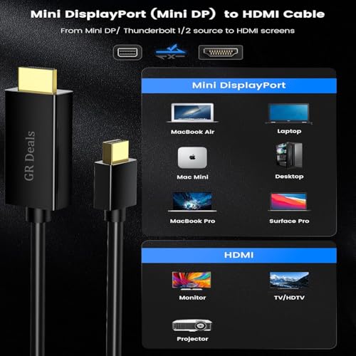 - توافق واسع - كيبل منفذ عرض صغير بدقة 4 كيه إلى HDMI مثالي لأجهزة اللاب توب والتابلت والشاشة وجهاز العرض والتلفزيون. متوافق مع M-ac-Book Air وM-ac-Book Pro وM-ac وM-ac Pro وSur-face Pro والمزيد من الأجهزة ذات واجهات ميني دي بي.