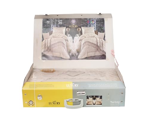 - طقم جي أر، 2 كوفرته مقاس 200×240 + 2 ملاية مقاس 220×240 + 2 مخدة مقاس 45×120 + 2 خدادية مقاس 55×70 + 2 مدفع + 2 تربيعة، 12 قطع سوفت فايبر معالج ، كافيه - 17699