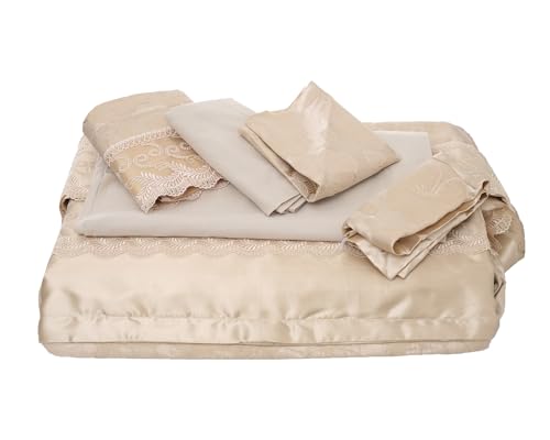 Egyptian Textile - طقم جي أر، 2 كوفرته مقاس 200×240 + 2 ملاية مقاس 220×240 + 2 مخدة مقاس 45×120 + 2 خدادية مقاس 55×70 + 2 مدفع + 2 تربيعة، 12 قطع سوفت فايبر معالج ، كافيه - 17699