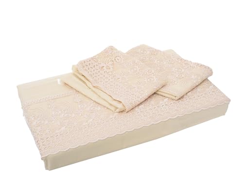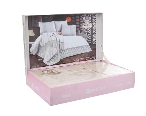 - جي أر طقم 4 قطع، ملاية مقاس 240×275 + 2 خدادية مقاس 50×70 + 1 مخدة مقاس 175×45، مطرز قطن 100% معالج ضد الوبرة والانكماش، "رصاصي" - 16415