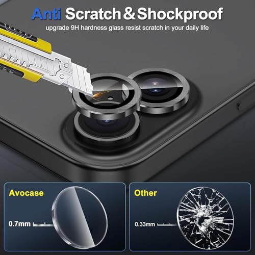 - حماية ممتازة: زجاج مقسى بدرجة صلابة 9H بسمك 0.7 ملم يوفر مقاومة فائقة للخدش وحماية ضد الصدمات لعدسات كاميرا ايفون الخاصة بك