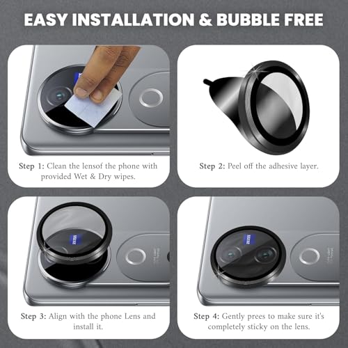 - سهل التركيب: عملية تركيب بسيطة من 4 خطوات مع مناديل مبللة وجافة مرفقة تضمن تطبيقًا خاليًا من الفقاعات: تنظيف العدسة ونزع طبقة اللصق والمحاذاة بدقة، ثم الضغط بلطف.