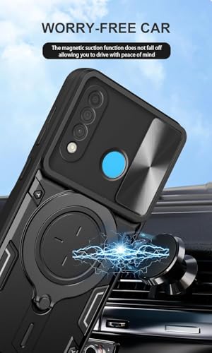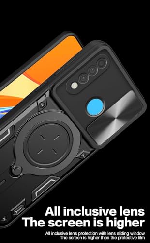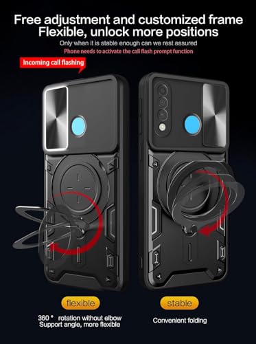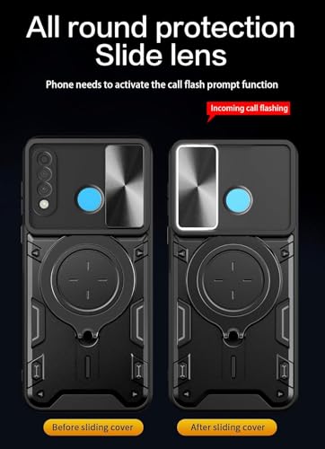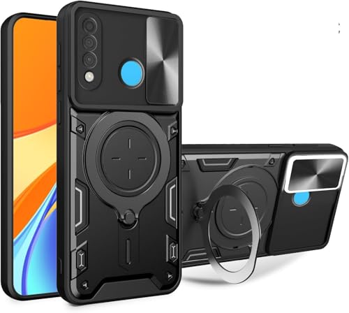 GRABIST - جراب جرابيست متوافق مع هواوي P30 لايت، جراب خلفي بحماية ممتازة مع غطاء منزلق للكاميرا وحامل حلقي مدمج مضاد للصدمات لموبايل هواوي P30 لايت (اسود)