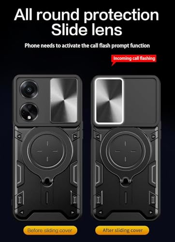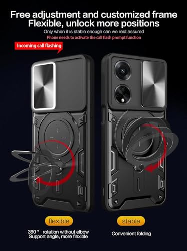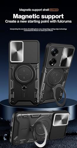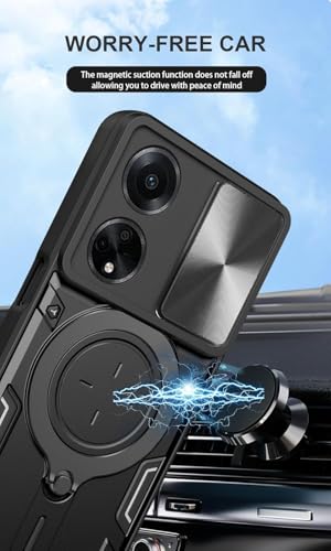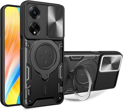 GRABIST - جراب جرابيست متوافق مع اوبو A98 الجيل الخامس 5G، جراب خلفي بحماية ممتازة مع غطاء منزلق للكاميرا وحامل حلقي مدمج مضاد للصدمات لموبايل اوبو A98 (اسود)