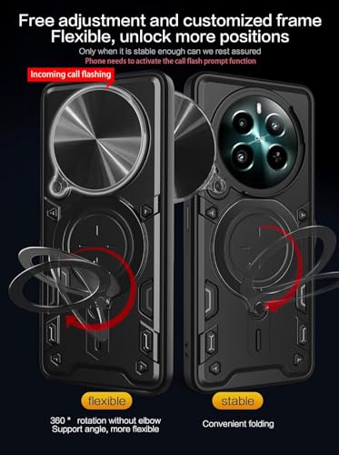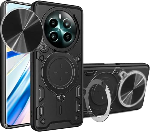 GRABIST - جراب جرابيست متوافق مع ريلمي 12 بلس 5G / ريلمي 12 4G، جراب خلفي بحماية ممتازة مع غطاء منزلق للكاميرا، حامل حلقي، غطاء مضاد للصدمات لموبايل ريلمي 12 بلس 5G (ريلمي 12+ 5G) (فضي)