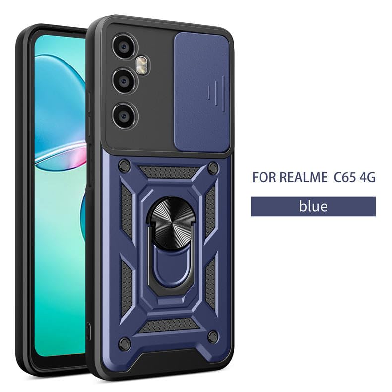 GRABIST - جراب حماية خلفي مضاد للصدمات بغطاء منزلق للكاميرا وحامل حلقي لموبايل ريلمي C65 شبكة الجيل الرابع 4G من جرابيست، أزرق
