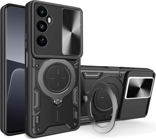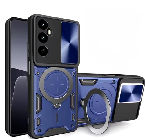 GRABIST - جراب حماية خلفي مضاد للصدمات بغطاء منزلق للكاميرا وحامل حلقي لموبايل ريلمي C65 شبكة الجيل الرابع 4G من جرابيست، أزرق