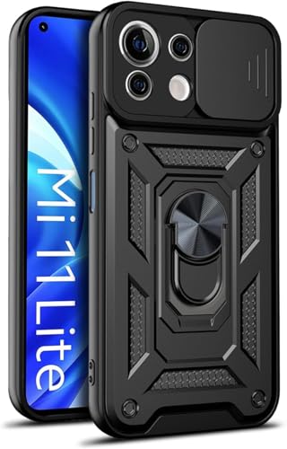 GRABIST - جراب حماية خلفي مضاد للصدمات لشاومي مي 11 لايت شبكة الجيل الرابع 4G والخامس5G من جرابيست، مزود بغطاء منزلق للكاميرا وحامل حلقي مدمج، متوافق مع مي لايت 4G/ شاومي 11 لايت 5G NE (أسود)