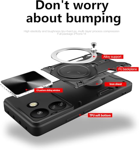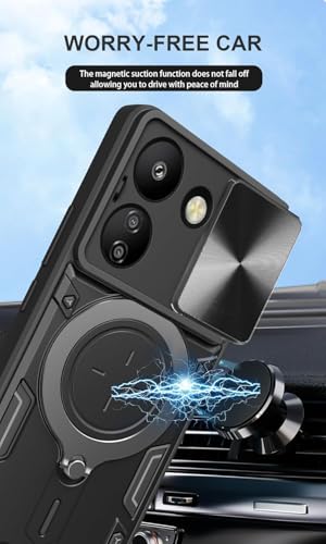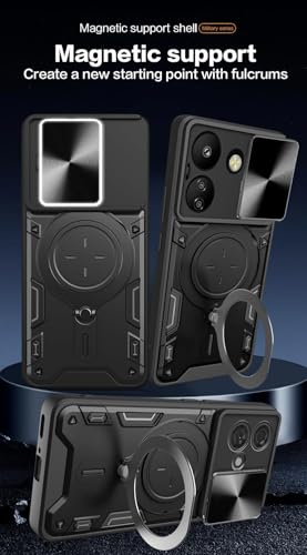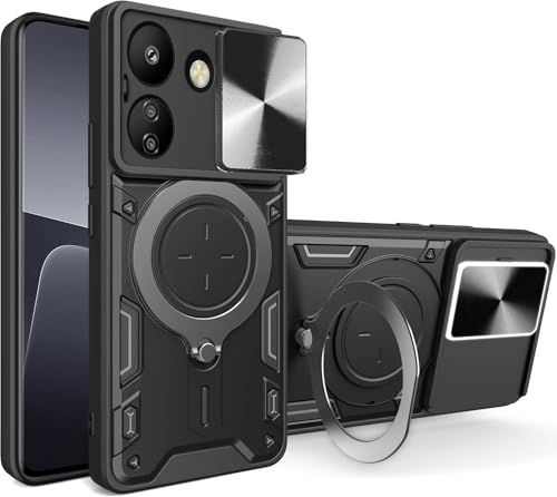 GRABIST - جراب بحماية ممتازة مع غطاء منزلق للكاميرا وحامل حلقي مدمج مضاد للصدمات متوافق مع موبايل شاومي ريدمي 13C شبكة الجيل الرابع 4G / بوكو C65 شبكة الجيل الرابع 4G من جرابيست (لون أسود)