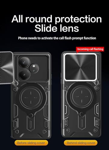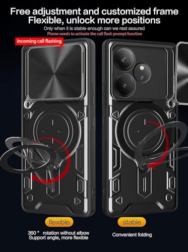 GRABIST - جراب جرابيست لريلمي GT 6 / ريلمي GT 6T / ريلمي GT Neo6 / ريلمي GT Neo6 SE، مضاد للصدمات، حامل حلقي دوار 360 درجة، غطاء منزلق للكاميرا (ارجواني)