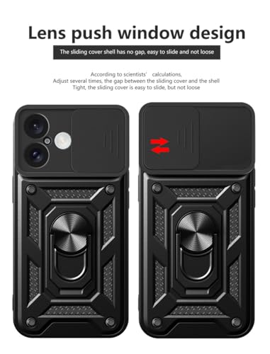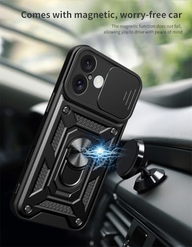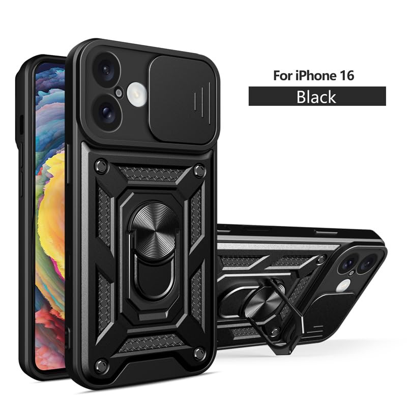 GRABIST - جراب حماية مع غطاء منزلق للكاميرا وحامل حلقي دوار 360 درجة ومسند مضاد للصدمات لموبايل آيفون 16 من جرابيست - (لون فضي)