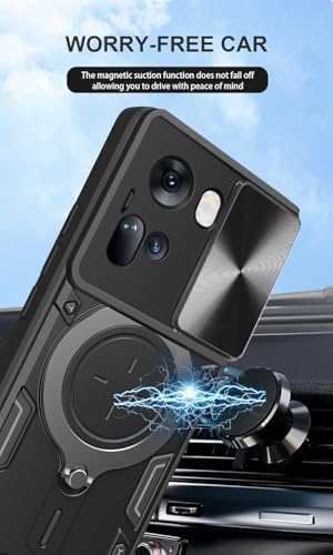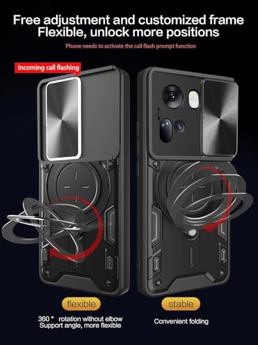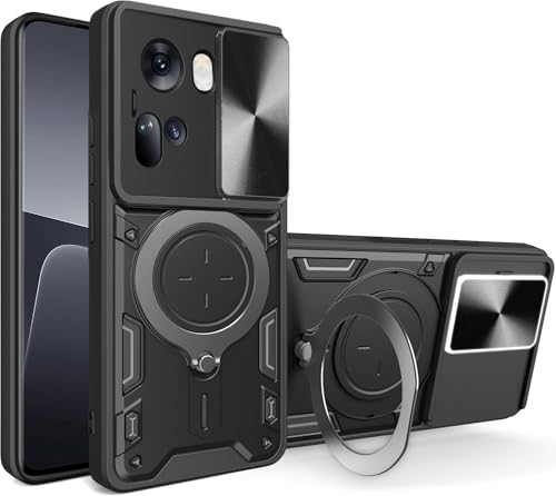 GRABIST - جراب حماية متوافق مع موبايل اوبو رينو 11 شبكة الجيل الخامس 5G غطاء منزلق للكاميرا وحامل حلقي دوار 360 درجة ومسند مضاد للصدمات لموبايل من جرابست (فضي)، بلاستيك