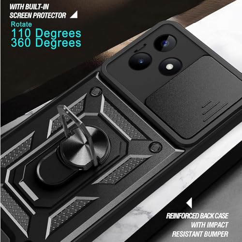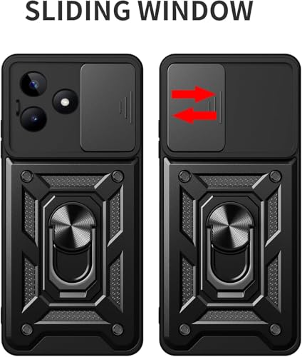GRABIST - جراب حماية خلفي فاخر مع غطاء منزلق للكاميرا وحامل حلقي مدمج مضاد للصدمات لموبايل أوبو ريلمي C53 شبكة الجيل الرابع 4G وريلمي C51 نوت 50 من جرابيست