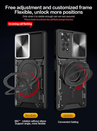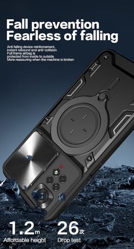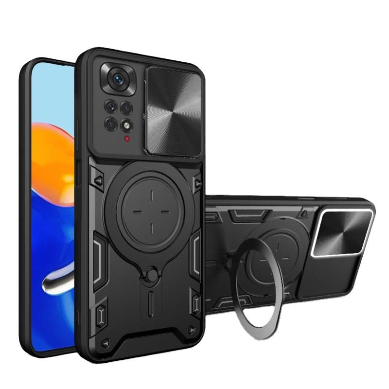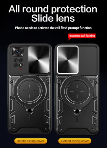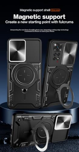 GRABIST - جراب حماية متوافق مع ريدمي نوت 11S - 11 4G مع غطاء منزلق للكاميرا ، حامل حلقي دوار 360 درجة مضاد للصدمات لريدمي 11 4g - 11s من جرابيست اسود