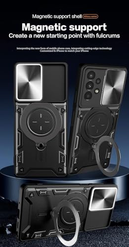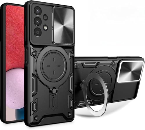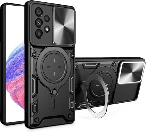 GRABIST - غطاء حماية متوافق مع سامسونج جالاكسي A52 A52S A52 5G منزلق للكاميرا حامل حلقي دوار 360 درجة مسند مضاد للصدمات سيارة مغناطيسي عسكري لسامسونج A52 A52s A52 5G اسود