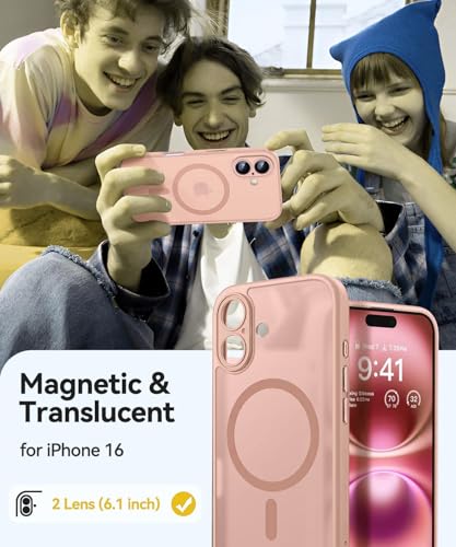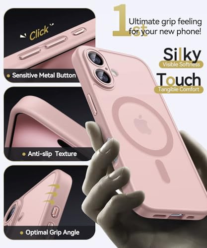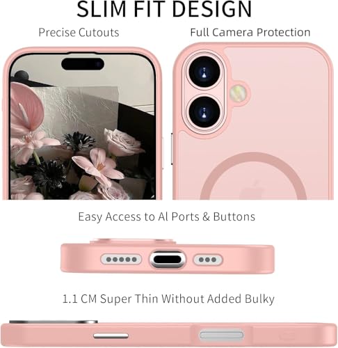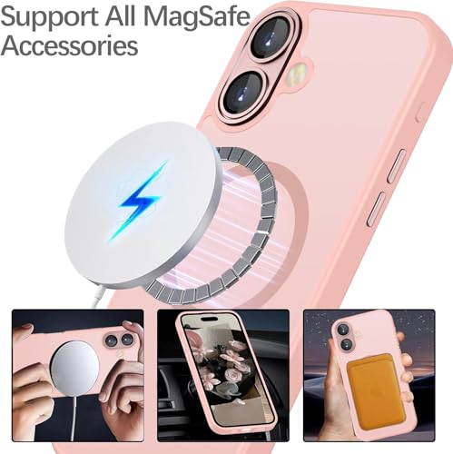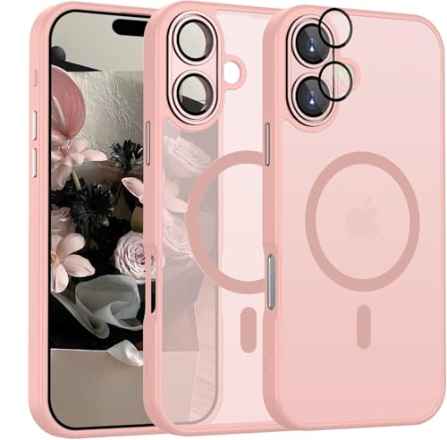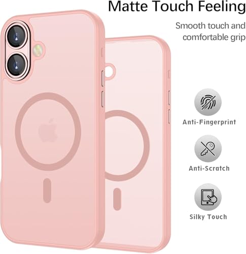 GRABIST - جراب حماية مغناطيسي متوافق مع آيفون 16 برو ماكس، مطور بحماية كاملة للكاميرا مع عدسات ومتوافق مع الشحن اللاسلكي، شفاف مطفي، جراب واقي مضاد للصدمات من جرابست (وردي)
