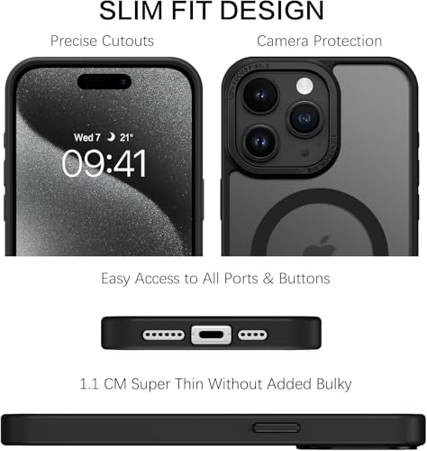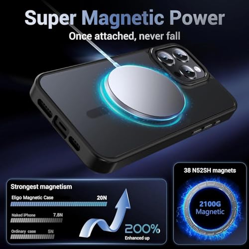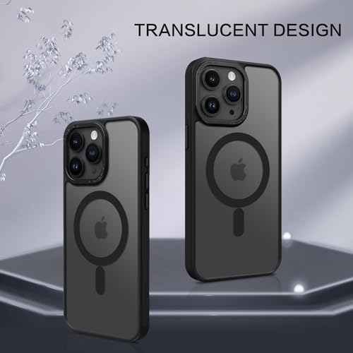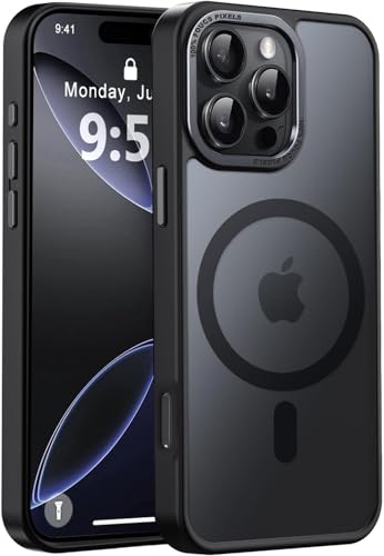 GRABIST - جراب مغناطيسي متوافق مع ماج سيف بإطار معدني مدمج للكاميرا وحماية مغناطيسية بتصميم شفاف غير لامع من الدرجة العسكرية للحماية من السقوط لموبايل آيفون 16 برو ماكس من جرابست (أسود)