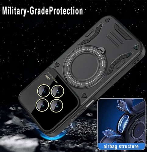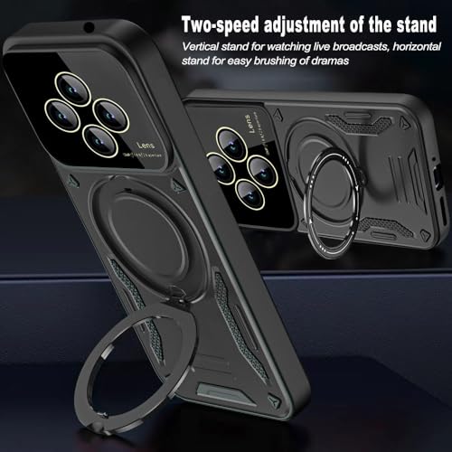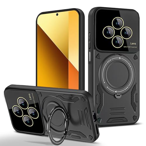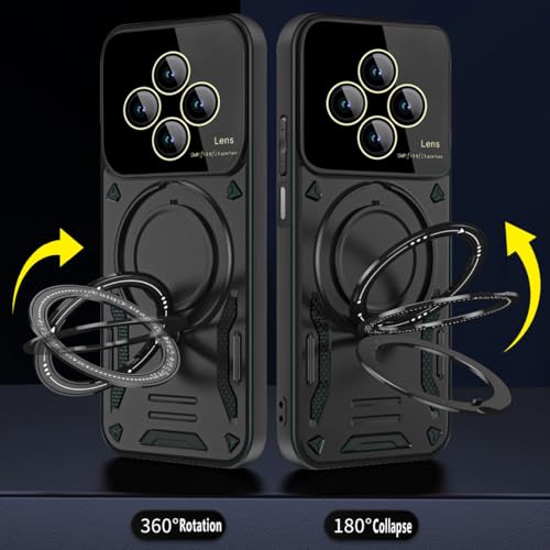GRABIST - جراب حماية مغناطيسي لموبايل ريدمي 14C شبكة الجيل الرابع 4G/ بوكو C75 شبكة الجيل الرابع 4G مع واقي عدسة الكاميرا شديد التحمل ومضاد للصدمات مع مسند حلقي متوافق مع الحامل المغناطيسي من جرابست، (أخضر)