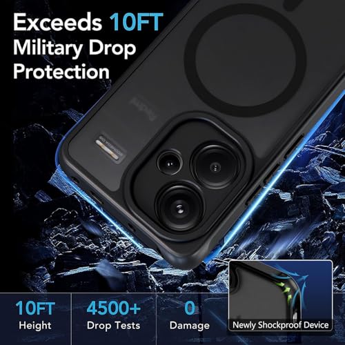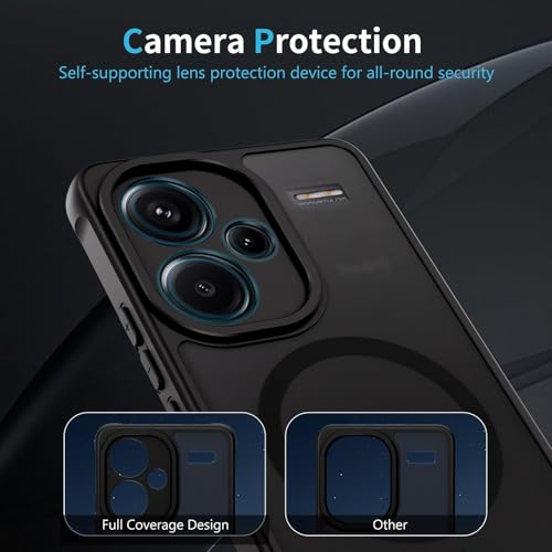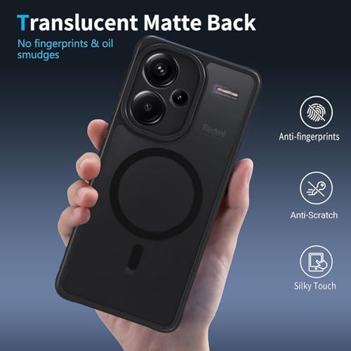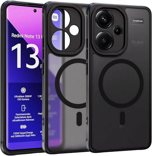 GRABIST - جراب حماية مغناطيسي لموبايل ريدمي نوت 13 برو بلس شبكة الجسل الخامس 5G، يوفر حماية كاملة للكاميرا مع العدسة، متوافق مع الحامل المغناطيسي، تصميم شفاف ومطفي ومضاد للصدمات من جرابيست (أسود)