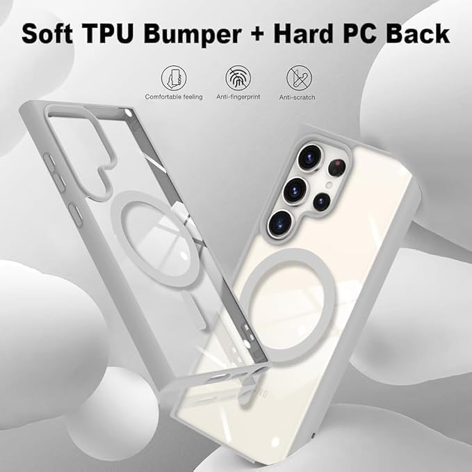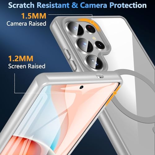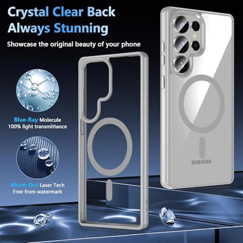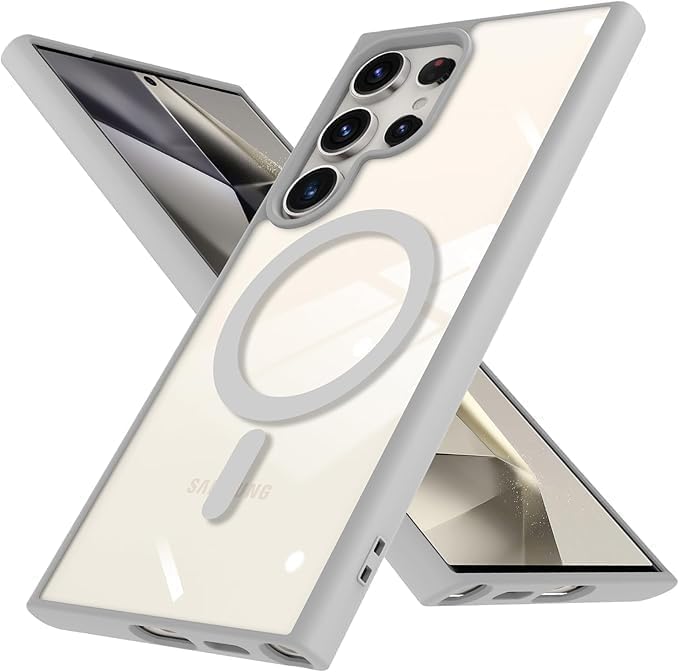 GRABIST - جراب موبايل مغناطيسي لموبايل سامسونج جالاكسي S24 الترا من جرابيست، جراب حماية من الدرجة العسكرية بجزء خلفي شفاف وشحن لاسلكي متوافق مع سامسونج S24 الترا، (رمادي تيتانيوم)