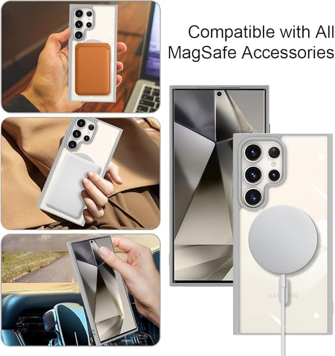 - توافق مغناطيسي: يتميز بمغناطيس مدمج للتثبيت الآمن والتوافق مع الشحن اللاسلكي مع سامسونج جالاكسي S24 الترا