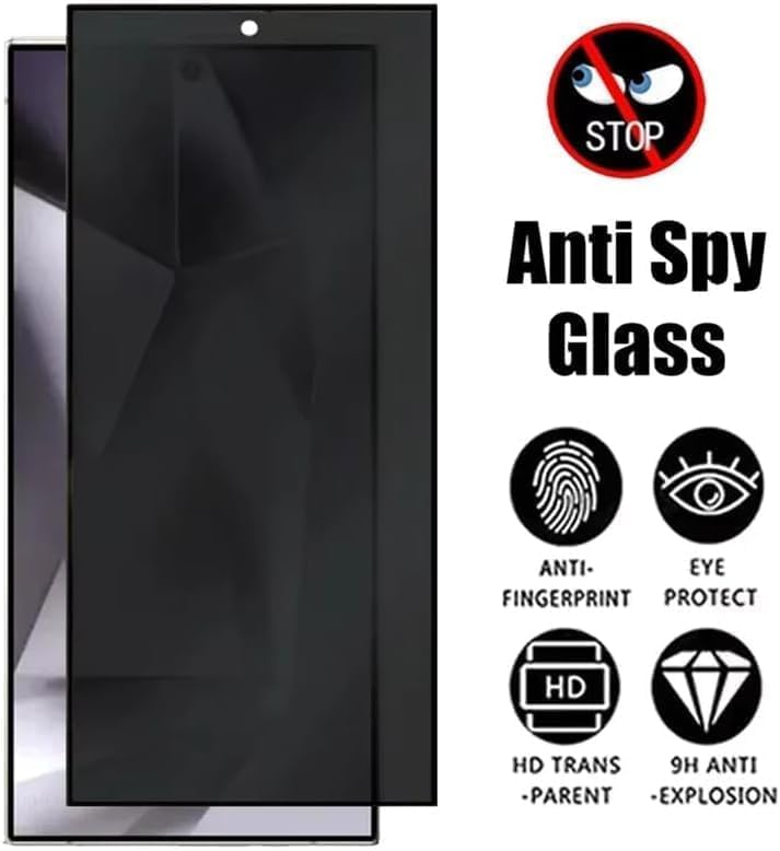GRABIST - شاشة حماية الخصوصية تدعم فتح القفل ببصمة الإصبع، مقاومة للخدش وسهلة التركيب بدون تشكيل فقاعات، شاشة بدرجة صلابة 9، توفر تغطية كاملة لموبايل سامسونج جالاكسي S24 الترا من جرابيست