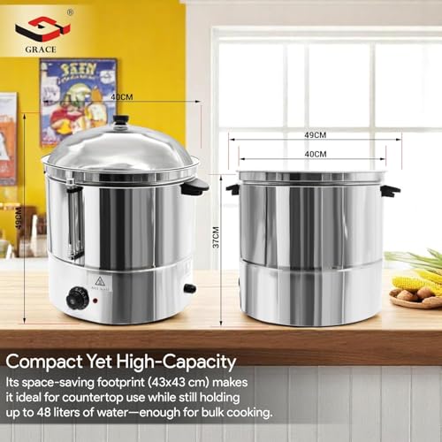 TRADO EGYPT - غلاية ذرة حلوة من جريس، ٤٨ لتر، ٢.٥ كيلو واط، ستانلس ستيل، مع تحكم في درجة الحرارة، خفيفة الوزن ٧ كجم