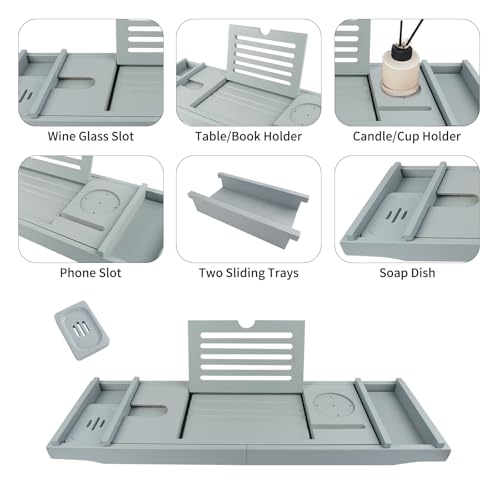 Graceware - صينية طاولة حمام من الخيزران من جريس وير (رمادي فاتح)