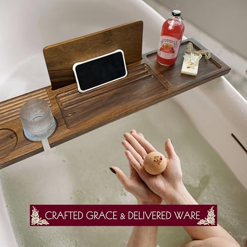 Graceware - طاولة حوض استحمام من خشب الجوز الصلب من جريس وير، صينية للحمام لحوض الاستحمام (29.5 انش × 8 انش × 1 انش)، صينية طاولة للحوض، اكسسوارات حمام فاخرة للنساء/منزل جديد تدفئة المنزل