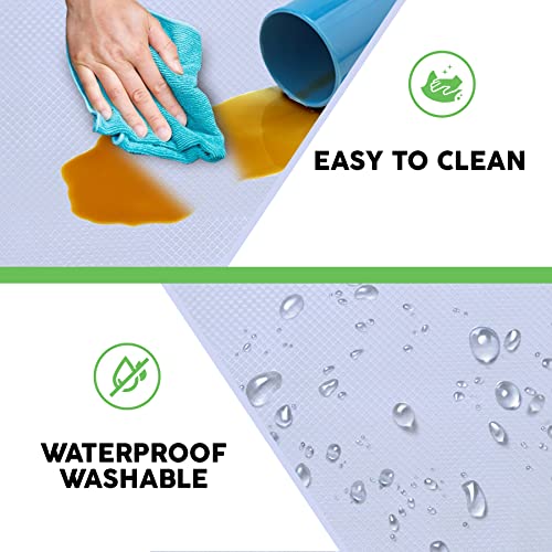 - المادة: يتميز المفرش من جرايد ون بتصميم نقشة ماسية بارزة وقاعدة مانعة للانزلاق مصنوعة من مادة إيفا فائقة المتانة وهو صديق للبيئة وخالي من مادة بيسفينول أ والروائح، مما يضمن لك عمرًا طويلًا واستخدامًا آمنًا. صنع المفرش من مواد عالية الجودة وآمنة تمامًا على الأطعمة، مما يسمح بملامسته المباشرة للفواكه والخضروات بكل طمأنينة.