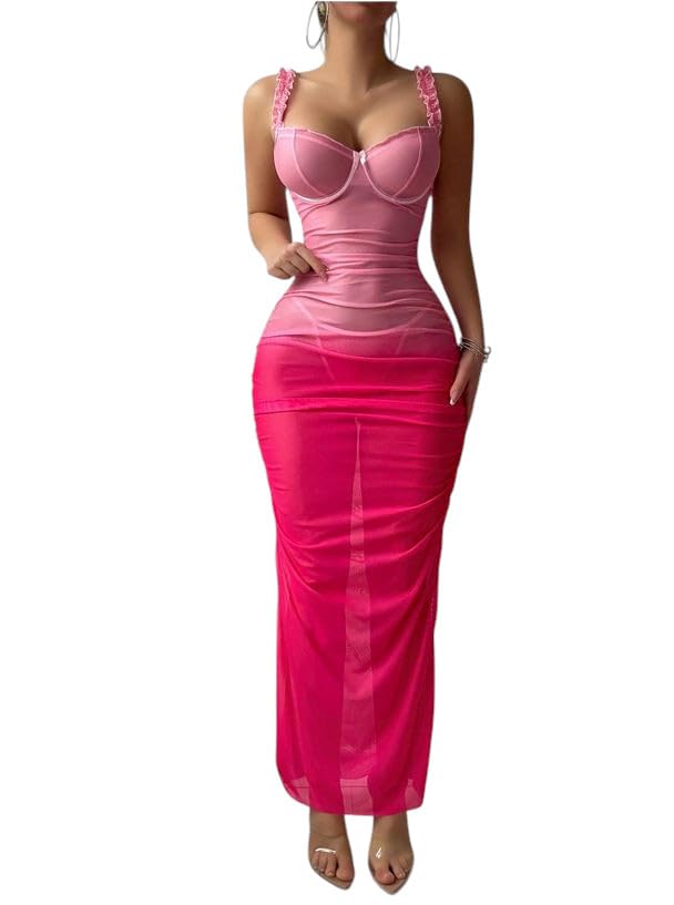 Generic - فستان ماكسي ضيق متدرج، تصميم مكشكش، بلوزة بنمط كورسيه مع أشرطة مكشكشة