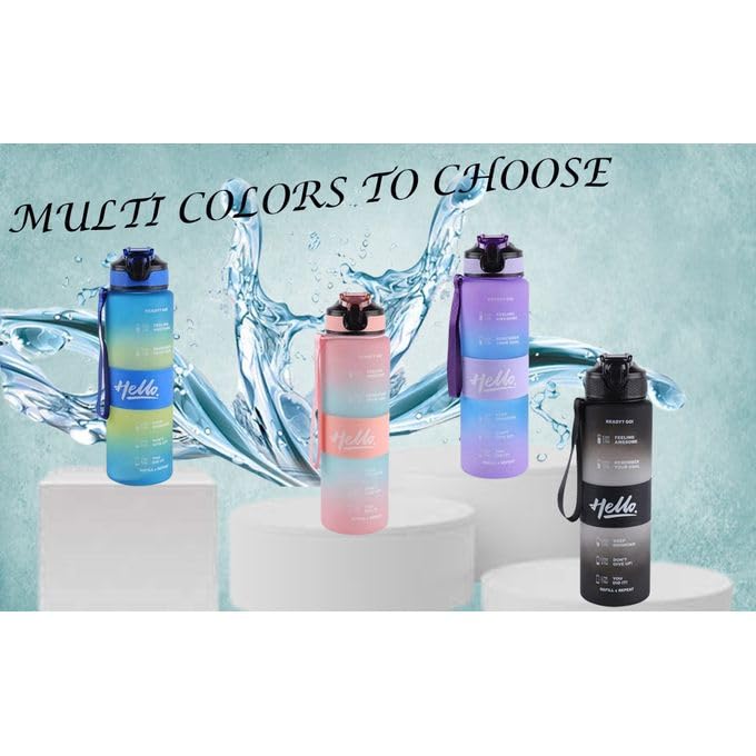 Generic - زجاجة مياه رياضية متدرجة الألوان، سعة ١٠٠٠ مل، مع غطاء آمن وحزام حمل