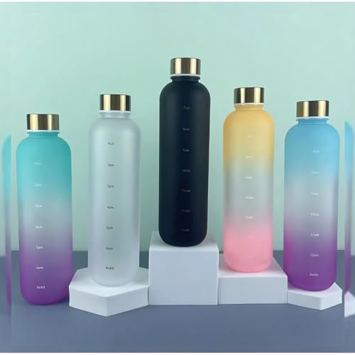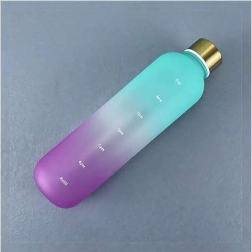 Generic - زجاجة مياه متدرجة مع علامات زمنية، لون تركواز وأرجواني متدرج، غطاء ذهبي
