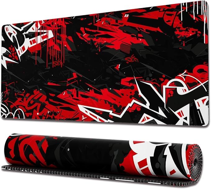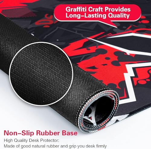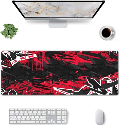 Generic - قاعدة ماوس للألعاب للوحة المفاتيح والماوس والمكتب من مطاط مضاد للانزلاق من جرافيتي، إصدار يحمل طباع السرعة بلون أسود وأحمر (80 × 30 × 0.3 سم)