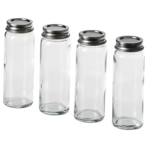 Graidient span - طقم برطمانات توابل 4 قطع سيترونهايج 10 سنتيلتر من جريدينت، زجاج شفاف مع غطاء من الفولاذ المقاوم للصدأ، محكمة الإغلاق للتوابل والمربى والعصير، تُغسل بغسالة الصحون، مناسبة لحامل توابل إيكيا أوبداتيرا