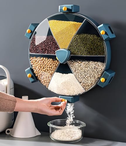 Generic - حل تخزين الحبوب، موزع أنيق بستة أقسام بتصميم دوار 360 درجة، مع لاصق مزدوج الجوانب متين لسهولة الوصول إلى البقوليات المفضلة لديك. المقاسات: 30 × 25 × 12 سم