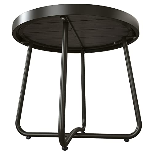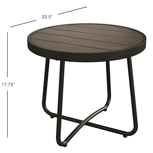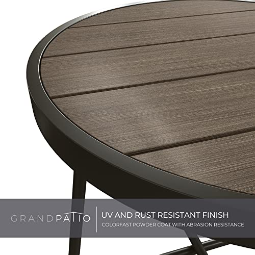 Grand patio - طاولة جانبية فناء فولاذية من جراند باتيو ، طاولة جانبية مستديرة خارجية مقاومة للطقس ، خشب تقليد بني داكن