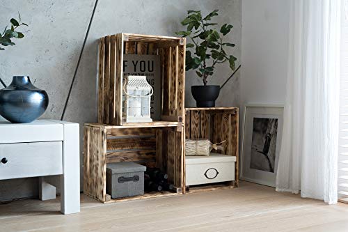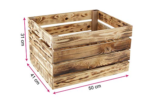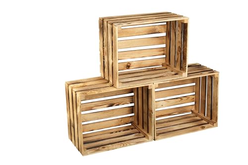 GrandBox - صندوق خشبي للفاكهة أو للزينة بتصميم رث عتيق، مفتوح من الخشب الصلب من جراند بوكس مقاس 50 × 40 × 30 مجموعة من 3 قطع