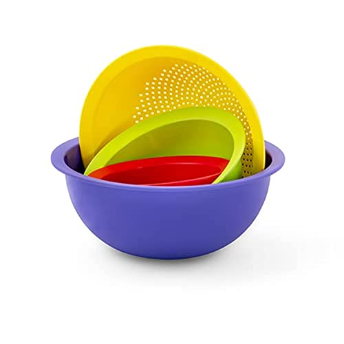 GRANDI - طقم مختلط من 3 قطع اطباق عميقة، مع مصفاة قوس قزح، متعددة الالوان، بلاستيك، من جراندي هوم