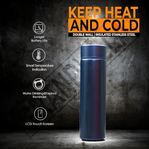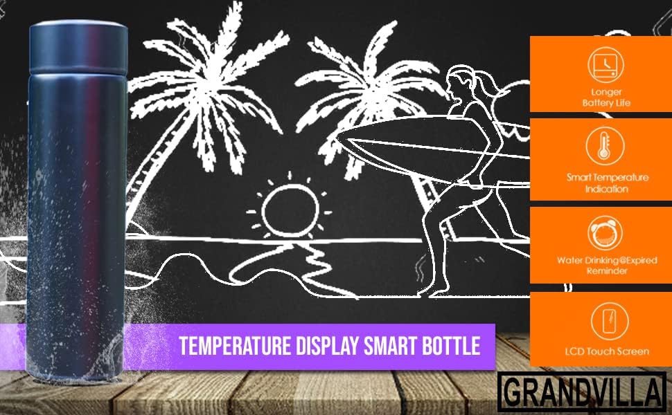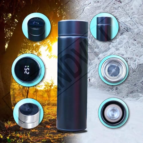 Generic - ترموس زجاجة ستانلس ستيل 304 مياه ذكي معزول بتفريغ الهواء مع شاشة LED للحرارة مثالي للمشروبات الساخنة والباردة للشنطة والمكتب والمدرسة والكلية من جراند فيلا (اسود، 500 مل)
