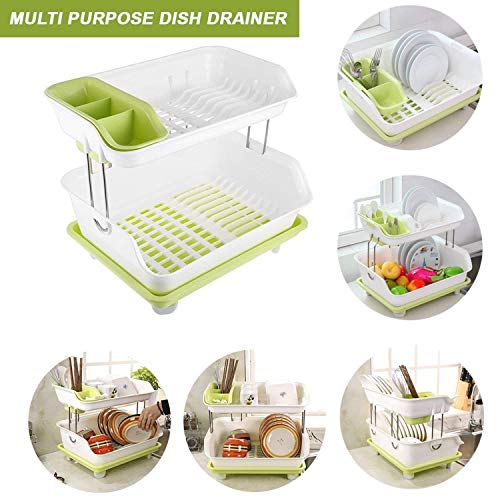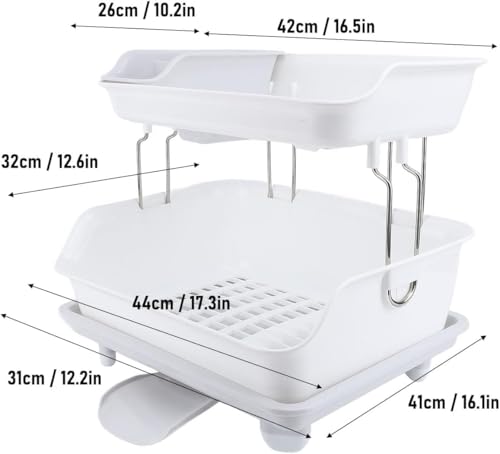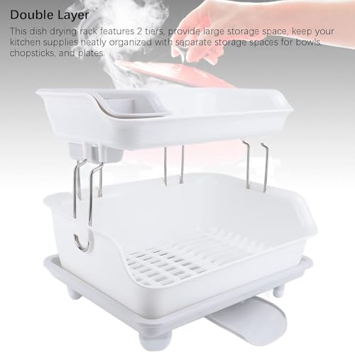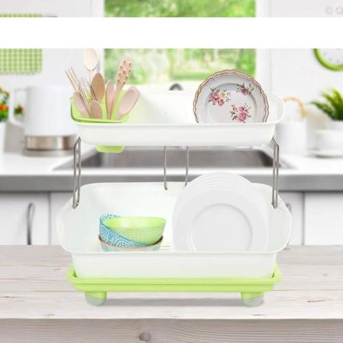 Generic - مطبقية جرانيت 2 دور لتجفيف وتنظيم الأطباق والأكواب مزودة بحامل معالق وتصريف مياه ذكي خامة قوية مقاومة للكسر والصدأ تصميم أنيق موفر للمساحة يناسب كل مطبخ عصري
