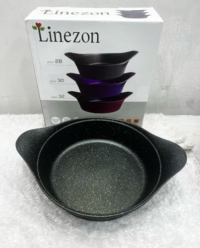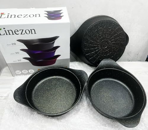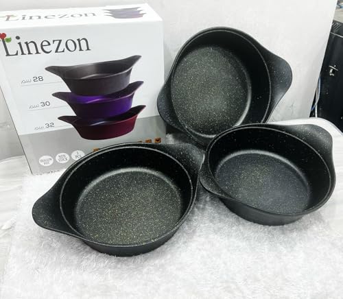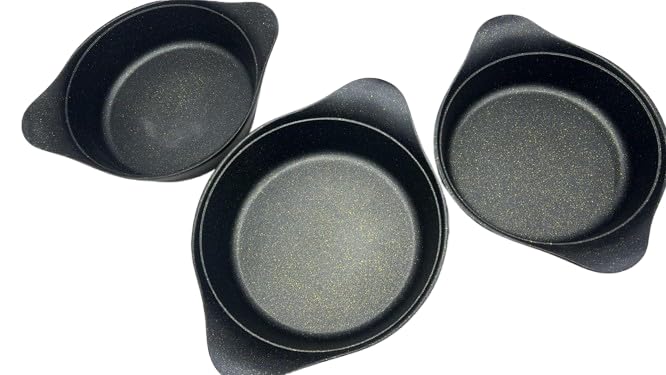 Generic - طقم اواني خبز جرانيت دائرية مع مقابض، 3 قطع، اسود وذهبي