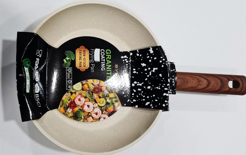 Generic - مقلاة غير لاصقة مطلية بالجرانيت خالية من الرصاص والكادميوم مناسبة لجميع انواع السخانات مقاس 22 سم، بيج