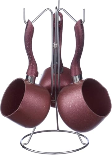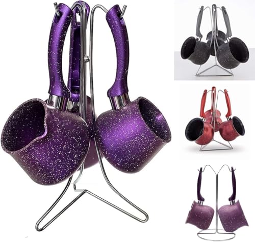 Generic - طقم كنك قهوة جرانيت 3 قطع بأحجام مختلفة – كنكة قهوة تركي تسخين لبن بطبقة غير لاصقة مع حامل معدني