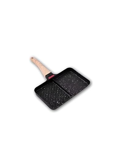 Generic - طاسة طهي جرانيت وشواية مزدوجة غير لاصقة بمقبض خشبي مصممة لشعلتين ومتوفرة في مجموعة من الألوان المتنوعة الجميلة