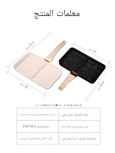 - العناية والأبعاد: يبلغ مقاسها 40 سم × 25 سم × 5 سم؛ يوصى بالغسيل اليدوي للحفاظ على الطلاء غير اللاصق والمقبض الخشبي؛ مصممة لتحمل درجات الحرارة العالية والحفاظ على الطهي المتساوي عبر طرق الطهي المختلفة.